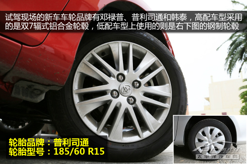 因为本次试架的车配用的轮胎品牌过多,大家也搞不大清楚到顾客手里的车胎究竟是什么品牌,但我们知道的是除开标配的2款手动挡车型选用的规格是175/65 R14外,其他所有都选用的是185/60 R15车胎。