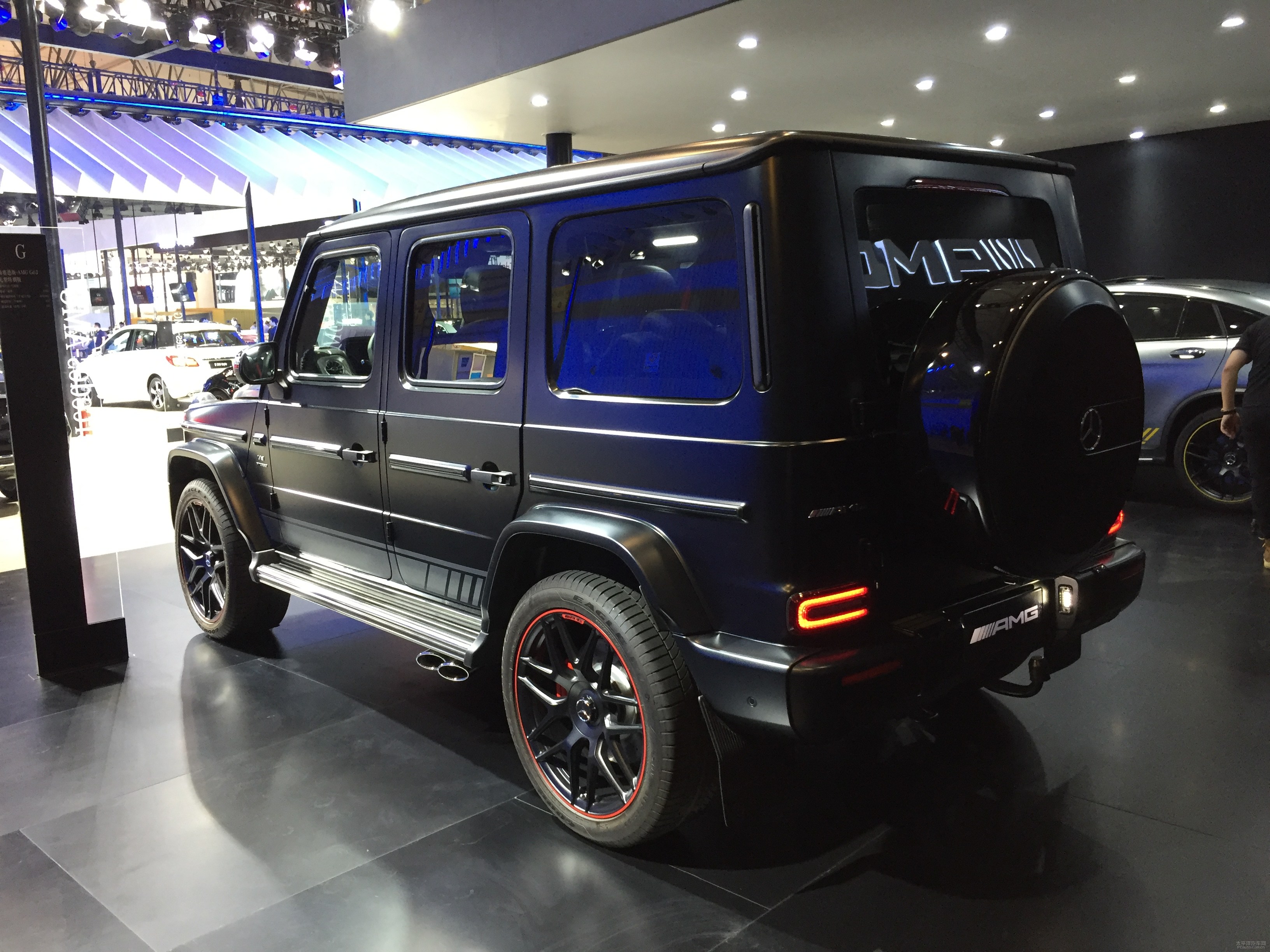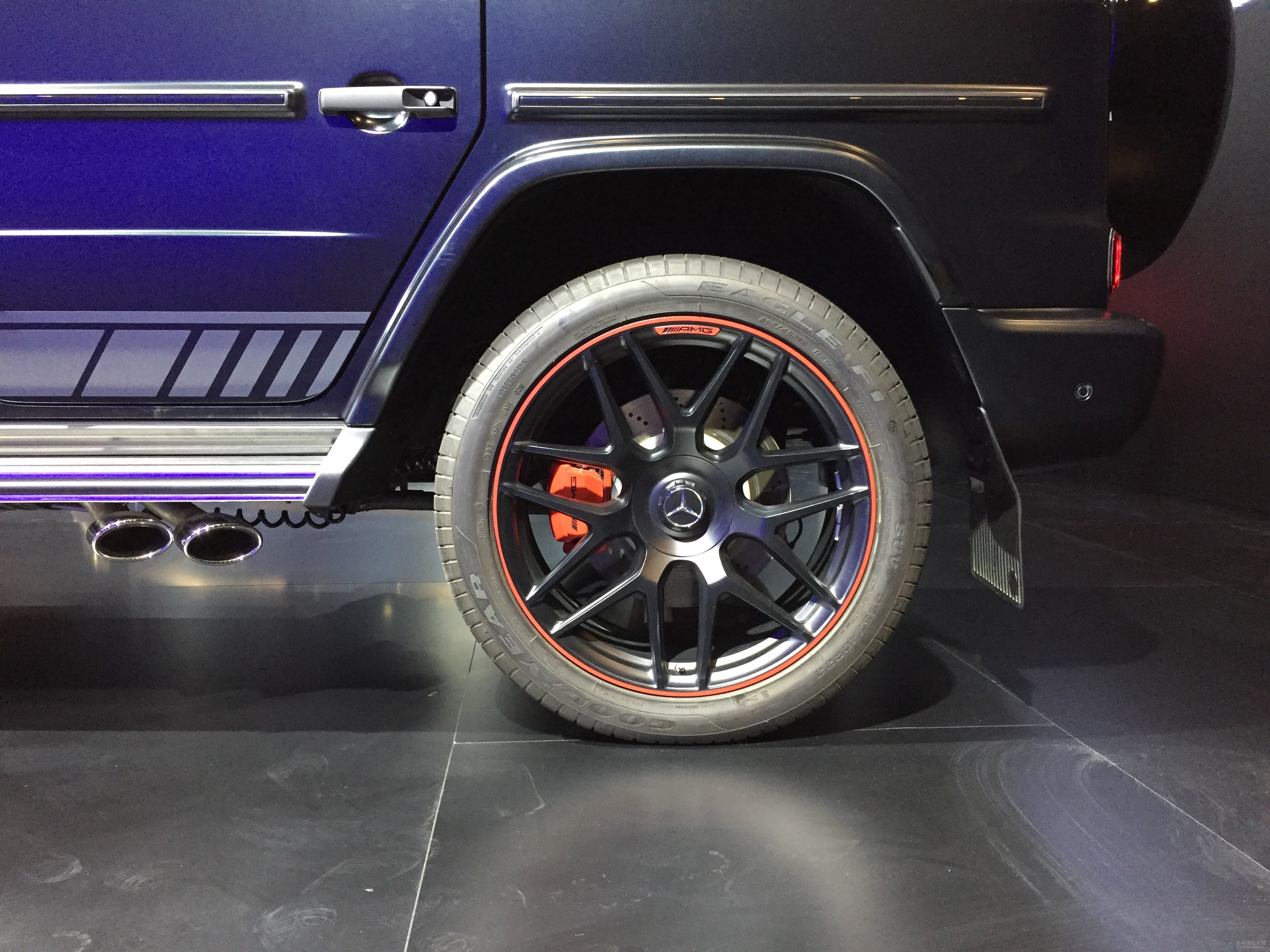 侧边一部分,对比不张扬藏在底盘的排汽管,立即外伸车窗外的四根排汽管(上下两边)让AMG G 63在視覺上更为猖狂,除此之外排气管隔板的排放系统能够在车里立即开展二级调处,构建更炫酷的声音。新汽车轮圈一部分,选用四条295/40 R22的固特异SUV专用型EAGLE F1和6活塞杆开洞盘的刹车系统把G 63的道路特性趋向直露。