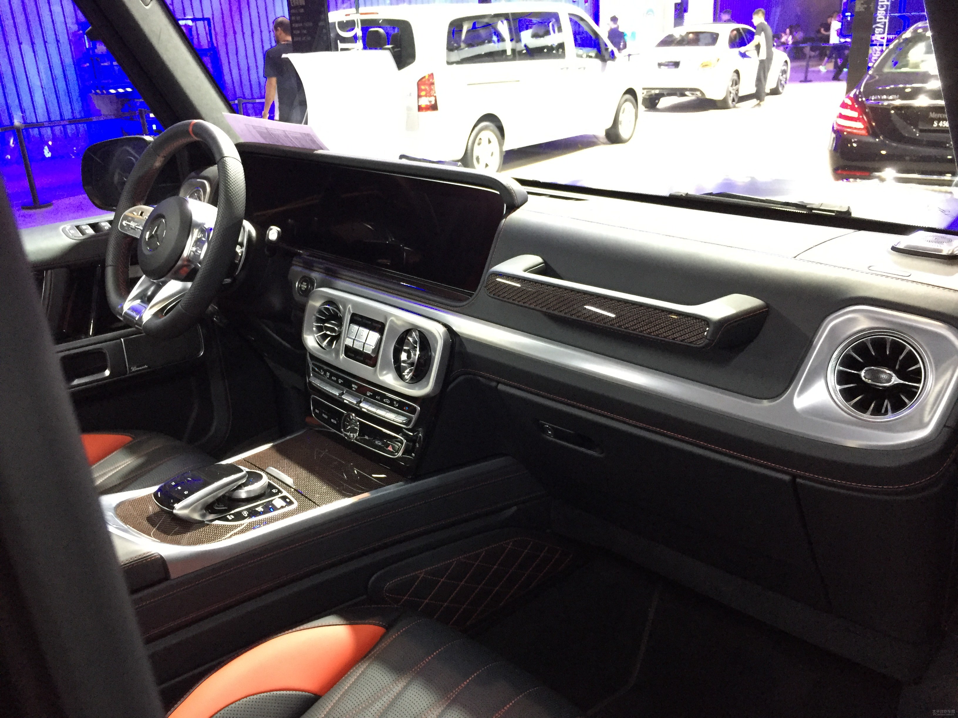 车内饰一部分,G63 车内饰焕然一新,出示了两色车内饰和全黑车内饰二种设计风格。新款奔驰为G 63设计方案了专享的车内仪表盘主题风格,COMAND互连互动系统软件的控制面板也维持了AMG车系一贯的设计风格,悬挂系统、排汽管能够立即开展独立设置。中控台显示屏也并不是素食的,在你腾云驾雾的那时候,它可以做为功能齐全的副车内仪表盘出現,瞬时速度值、即时驱动力、扭距这些驱动力和动态性信息内容都可以依据你的订制出現在中央政府的12.3寸显示屏上。