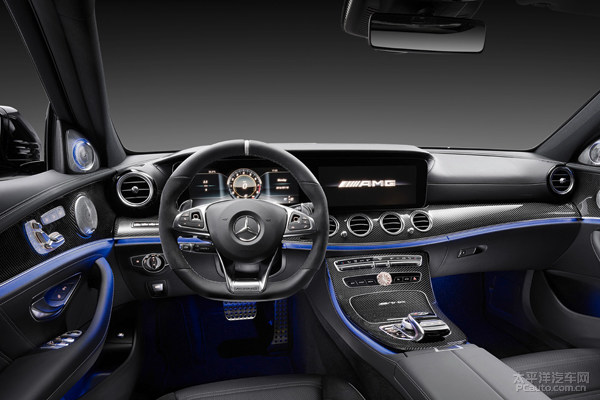 新一代AMG E63驾驶舱內部装饰设计比一般版更显出健身运动气氛。AMG厚底健身运动汽车方向盘十分吸引住眼珠,坐椅换为支撑点性更强的AMG桶形健身运动坐椅,车里很多选用牛皮和化学纤维材料包囊,配置64色车内氛围灯。