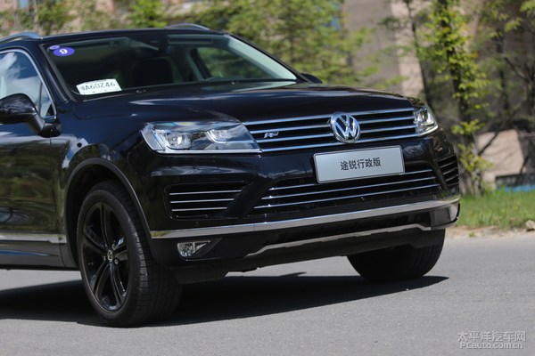 途锐行政部门版延用该款车系的外型车内饰,配置了R-Line健身运动模块。新汽车配置了特别制作的20英尺灰黑色轮圈,车体有好几处Executive Edition标志说明真实身份。熏黑了前后左右前灯选用了近远光一体式氙气灯,具备自动大灯、转向头灯、自适应远近光转换、转向辅助灯、大灯清洗等作用。