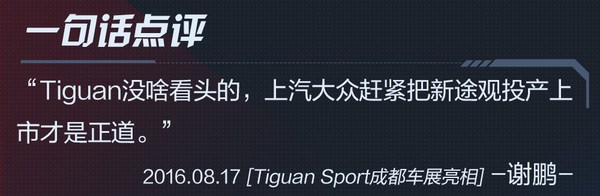 【尊流汽车网 新汽车频道栏目】大家Tiguan Sport将在2016成都车展现身。Tiguan Sport事实上就是说第二代Tiguan,先前R-Line版本号的车系早已在北京车展公布,此次来成都车展的是沒有R-Line健身运动模块的车系。