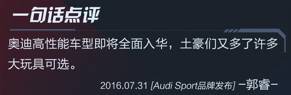 【尊流汽车网 新汽车频道栏目】此前,三款奥迪车高性能车在中国发售,奥迪车RS Q3/RS3也另外在中国首次亮相。除此之外,奥迪车宣布公布了全新升级子知名品牌Audi Sport,将来将有17款性能车系引入中国市场销售。