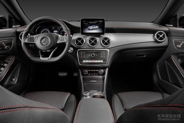 最新款CLA以内饰设计风格上并沒有显著转变,仅车内仪表盘选用了黑背景色设计方案,并出示全新升级的车内饰材料配搭设计风格。