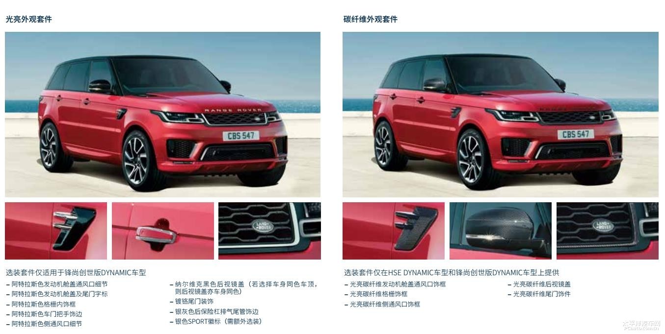最新款揽胜运动版各自有HSE DYNAMIC、锋尚神域版DYNAMIC、插电式油电混合P400e、SVR四款不一样级別的车系。外型看来,四款车系的差别也反映在前杠设计方案及其一些关键点层面,比如一般版车系将出示灰黑色外型模块、明亮外型模块及其复合材料外型模块可选择。而SVR车系则将出示专享复合材料模块可选择。