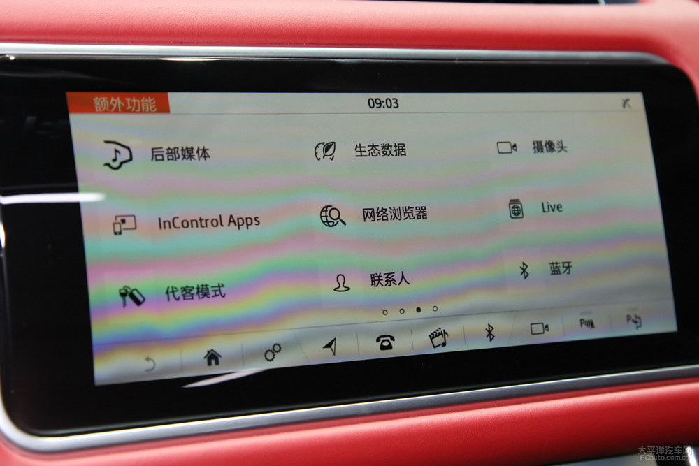 车内饰层面,新汽车造型设计选用了路虎揽胜星脉的室内设计风格,具有高新科技层次感。另外,仪表台地区选用了全新升级的触摸液晶显示屏,并配对Touch Pro Duo信息内容车载多媒体。车内饰关键点的地方的灰黑色/深蓝色色系搭配让此车更为年青。