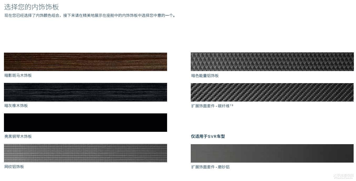 车内饰一部分,最新款揽胜运动版车系对比旧款在现代感上带了十分大的提高。新汽车将出示7种车内饰色调可选择,在其中黑檀木色/卷蓝天色拼凑仅适用SVR车系。而以内饰装饰板层面,新汽车一样出示了7中材料可选择,而且,磨纱铝材料也仅适用SVR车系。