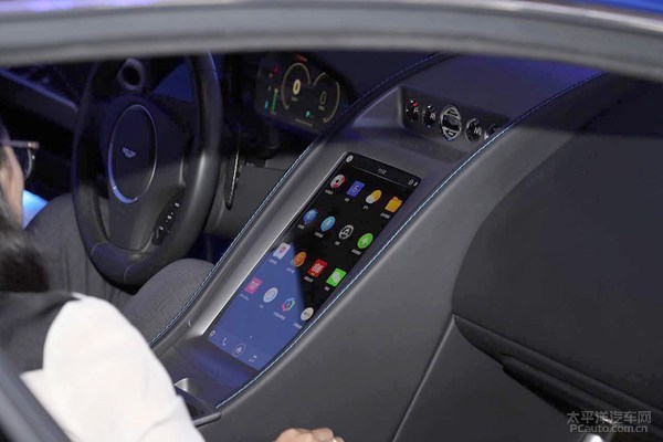 这台互连概念跑车根据阿斯顿·乔治RapideS四门跑车打造出,外型也不提了,讨论一下重中之重的车截互连系统软件。最引人注意的一部分,本来精雕细刻的中控台功能键如今被一整块13.3英尺的显示屏替代,从操作面板看,大部分和手机页面相近,入门无难度系数。