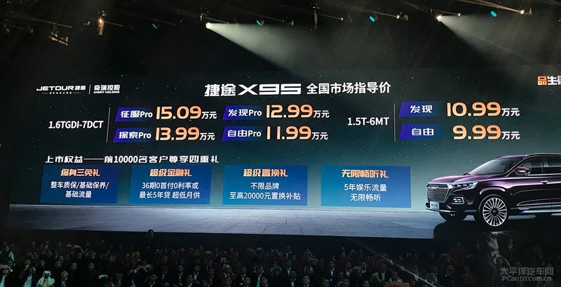 【尊流汽车网 新汽车频道栏目】捷途正式宣布,主打产品全新升级中小型SUV——捷途X95宣布发售,新汽车共发布6款配备车系,配用1.6T涡轮增压器柴油发动机,官方网具体指导市场价区段为9.99-15.09万余元。除此之外,官方网还发布前10000名分期购车客户悦享四重礼,主要包括30期零首付零利率或最多5年贷极低按揭的金融业礼、不分知名品牌最大20000的置换补贴、5年游戏娱乐总流量等。