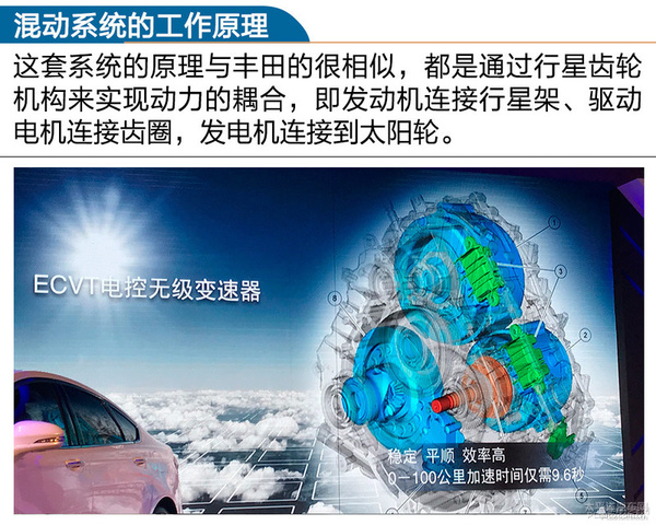 这儿就简易说一下这套系统软件的基本原理吧,这套系统软件的基本原理与丰田汽车的很类似,全是根据齿轮传动组织来保持驱动力的藕合,比如柴油发动机联接大行星架、驱动器电动机联接abs齿圈,发电机组联接到太阳光轮。但是柴油发动机与电机(驱动器电动机与发电机组)合理布局有别于该款THS二代的同轴输出排序,只是选用并排排序的方法(更贴近国外新一代普锐斯的混动系统)。