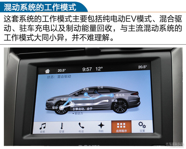 工作中方式主要包含纯电动车EV方式、混和驱动器、驻车电池充电及其制动系统动能收购,与主流产品混动系统的工作中方式各有千秋,也非常好了解。但是这几类方式的转换不用觉得实际操作,系统软件会依据具体工作状况全自动转换,人们能够 根据中控台大屏幕查询动力装置的工作中状况。