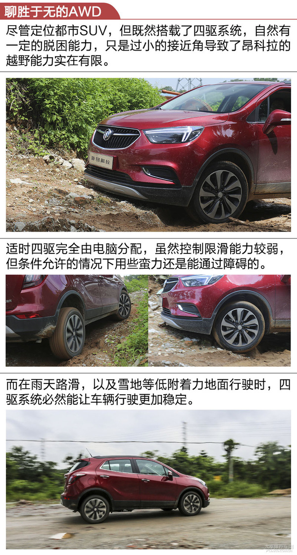 因为长前悬造成过小的接近角,新昂科拉的越野车工作能力仍然较为比较有限。适时四驱系统软件彻底由电脑上开展分派,尽管操纵限滑工作能力较差,但标准容许的状况下要些蛮力還是能根据阻碍的,而且四驱系统软件的确能使车子在下雨天路滑,及其雪天等低粘合力路面行车时更为平稳。