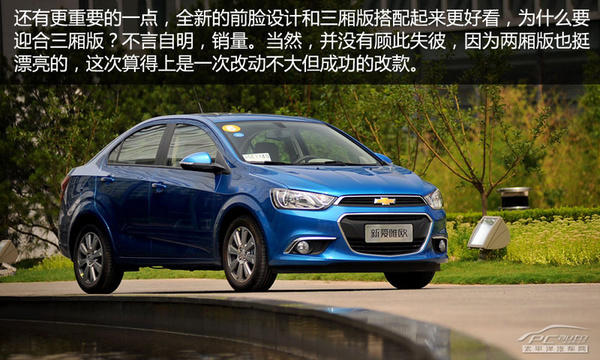 换代的重中之重在前脸,其他位置做为填补。做为一次中后期换代,爱唯欧的修改算作挺大了,针对异议颇多的进气格栅造型设计,新爱唯欧不加思索给它换了一个全新升级的造型设计,乃至会令人误认为雪弗兰又发布了新汽车。无论怎样说,全新升级的造型设计适应能力更广,而且放到两厢版和三厢版上面很融洽。