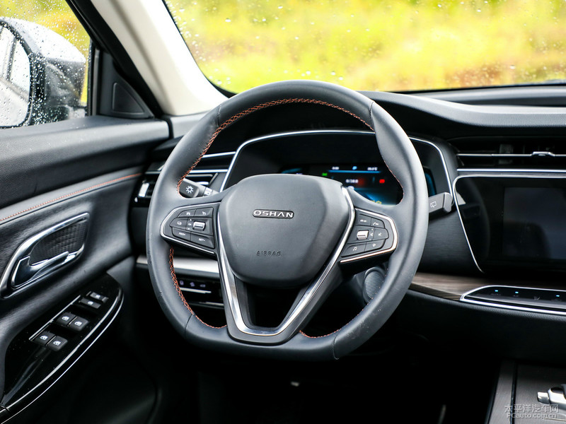 长安欧尚X7选用三幅式厚底汽车方向盘,并在汽车方向盘、坐椅、中央扶手、门边框等处添加鲜红色缝合线,为此为车内饰构建出充裕的年青健身运动气氛。