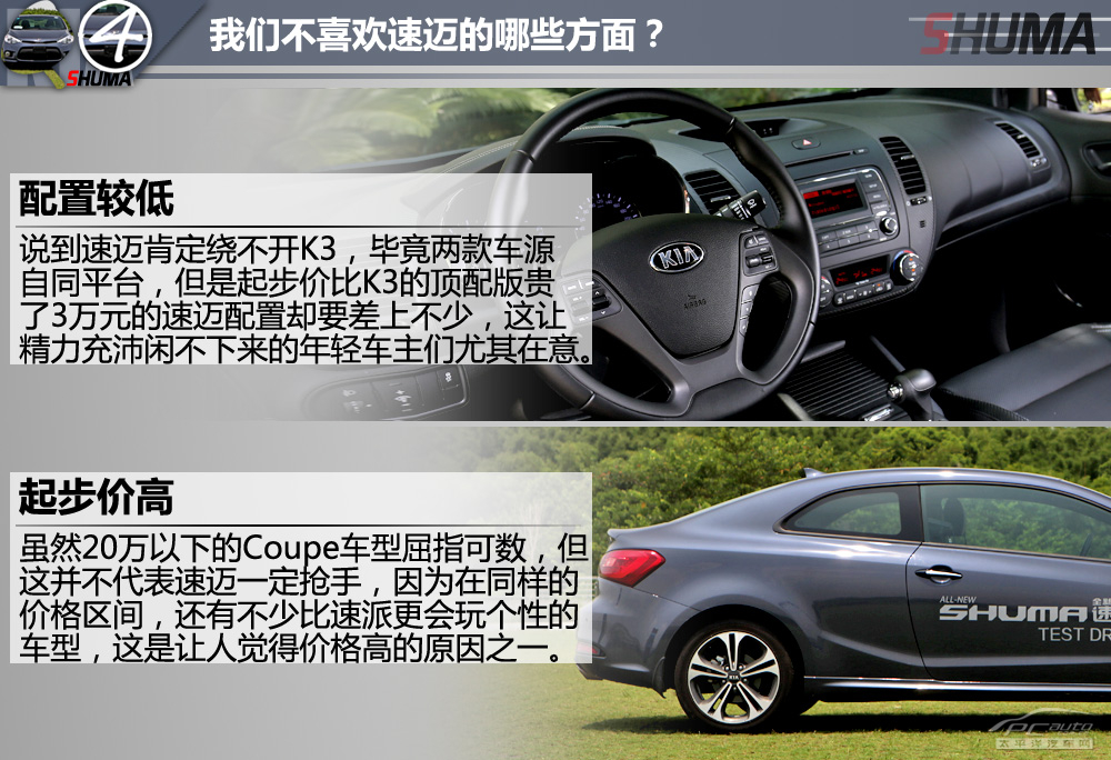 尽管20万下列的Coupe车系寥寥无几,但这并不是意味着速迈一定火热,由于在一样的价钱区段,也有许多 比速派更爱玩个性化的车系,并且设计风格更为胆大,都没有局限于单一的方式,当速迈应对这种敌人时价钱失去优点,它是给人一种价钱高的缘故之一。