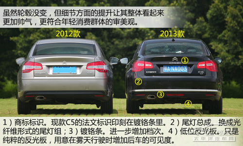 换代C5的尾端现有四处转变:1)商标logo标志。该款C5的法语标志印刻在不锈钢条里,而换代C5更期望把商标logo放到一个醒目的地区,已不遮遮掩掩;2)后尾灯总程。下边会详细介绍到;3)不锈钢条。它是很多德国车可以看到的设计方案,大规模的不锈钢条型能提高逻辑性,进而进一步提升级别;4)底位反光板。这并非底位刹车灯,仅仅纯碎的反光板,作用在雨雾行车时提升车后的能见度。