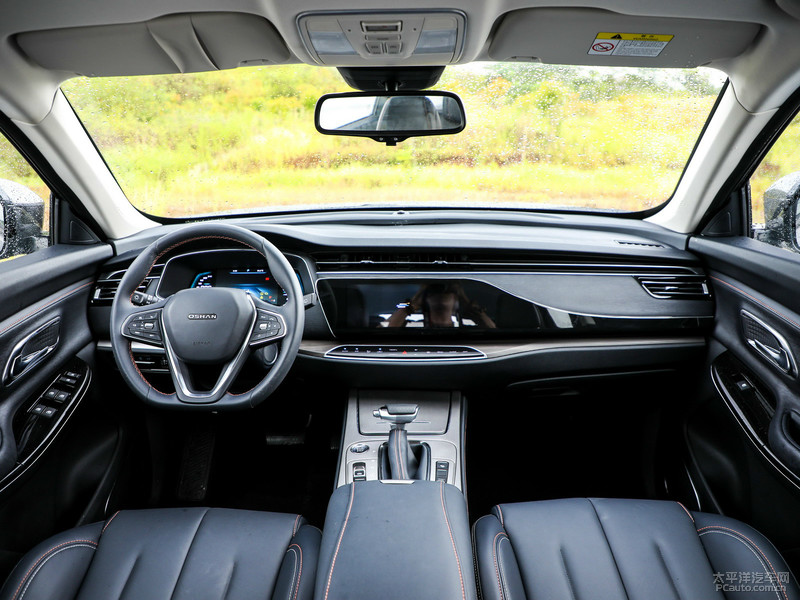 长安欧尚X7选用三幅式厚底汽车方向盘,并在汽车方向盘、坐椅、中央扶手、门边框等处添加鲜红色缝合线,为此为车内饰构建出充裕的年青健身运动气氛。