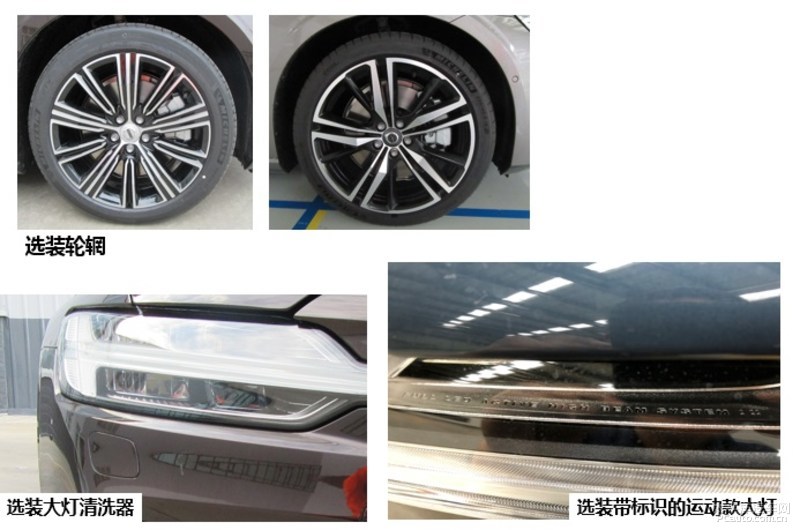 能够选配的一部分包含:轮圈、带监控摄像头的logo、带监控摄像头的外倒车镜、前面的车子角雷达探测,车后角雷达探测、侧窗灰黑色装饰条、灰黑色外倒车镜壳、健身运动款前/保险杠、排汽管、带迎宾灯门拉手、健身运动款气体格珊、健身运动款后标志。