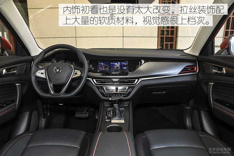 仪表台大规模银白色装饰板带来内窗非常好的視覺层次感,坐椅造型设计健身运动,包囊性非常好,靠背上还设计构思有“CS35 PLUS”的LOGO。