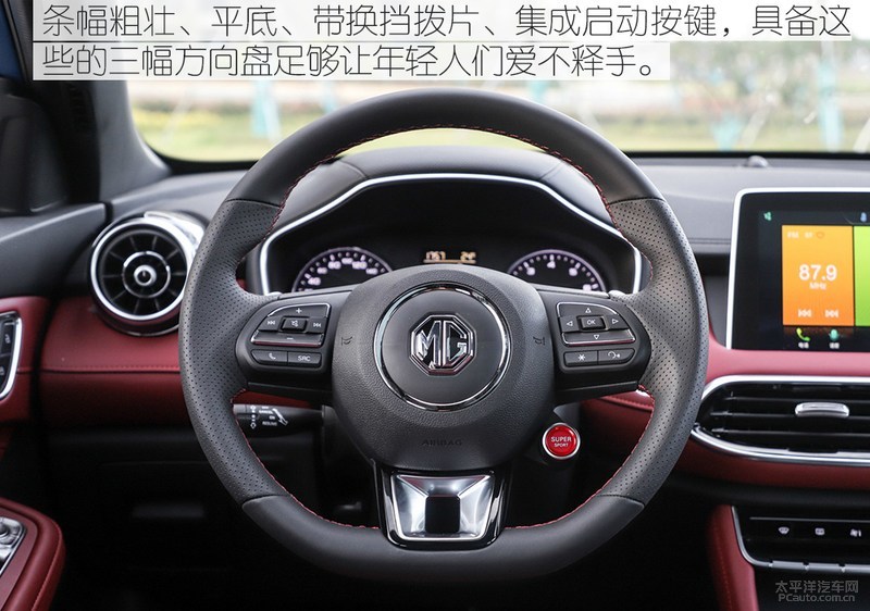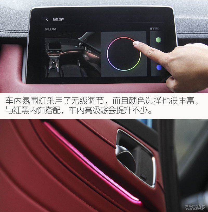 与外型同样,名爵HS的车内饰设计构思也紧紧围绕着健身运动进行,各关键点设置与色彩的搭配能令人造成明显的安全驾驶冲动。速度感、层次感、级别,这套内窗都做得非常好。