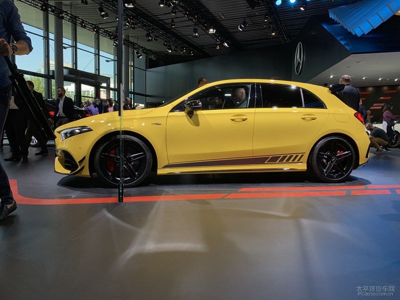 新汽车的前后左右占比、车窗玻璃边框线条、汽车后备箱轮廊等设计构思均与该款A45相仿,因而从侧边望去,车体造型设计没有显著转变。做为AMG购车款,动态性操纵主要表现当然要与一般A级打开差别。AMG A45改装了更健身运动化的减震器,提高支撑点幅度并减少车体重心点。前刹车踏板升級为六活塞杆,轮圈选用19英尺双五辐款式,配对规格型号为245/35 R19米其林PS4s车胎(A45选用18英尺轮圈配对245/40 R18车胎)。