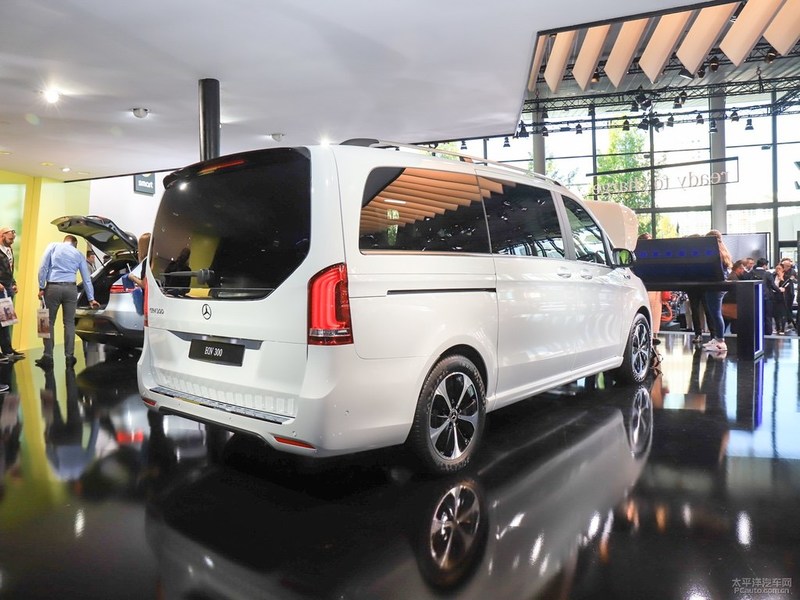 一般纯电动车的电池充电口都会汽车标志或翼子板处,EQV的电池充电插口十分新奇地布局于前包围着左边。挺直纤长的车箱说明此车具有宽阔的室内空间与强劲的装车工作能力,后挡风玻璃选用了奢华MPV需有的隐私玻璃。