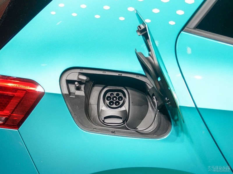 车体侧边,一根竖直的波导线从前翼子板出厂铭牌处围绕电池充电口盖拓宽至后尾灯组,为侧边产生立体式的光与影实际效果。ID.3的A柱比较歪斜,而且配置了很大规格的前三角窗,产生更强的视线,C柱则加上了波斑点状纹理装饰。此外,ID.3选用了银黑双色的低空气阻力款式轮圈,有较高的识别度。