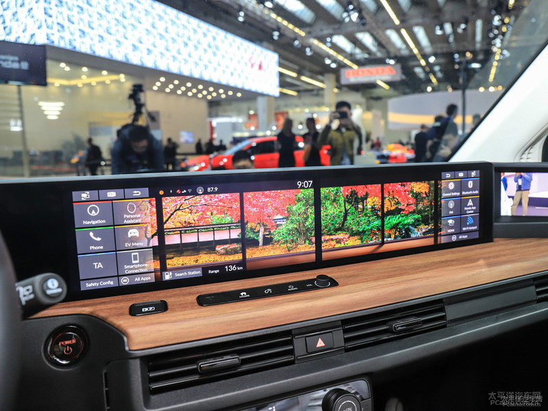车内饰层面,广州本田e将复古时尚和高新科技原素开展了非常好的融合:仪表台造型设计和红木纹装饰设计含有浓浓复古时尚气场,而横穿全部仪表台的5块显示屏则展现出明显的高新科技设计风格。仪表台两边显示屏均为电子器件倒车镜的显示器,正中间三块显示屏由左至右各自为8.8英尺液晶显示屏车内仪表盘及其二块对称性遍布的12.3英尺中控台屏。二块中控台屏的显示信息页面为对称性设计构思,并且均设立可自定设置內容的便捷实际操作栏,便捷主辅驾乘客实际操作。
