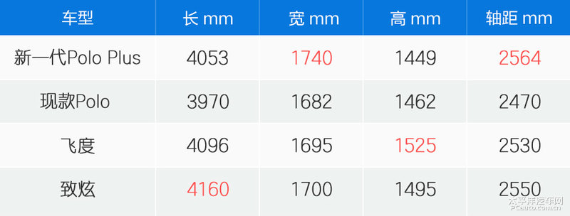 先从车体规格而言,Polo Plus其理姓名一样,的确是多代Polo里块头较大 的,车体长短提升了83mm,车体总宽提升了58mm,轮距提升了94mm,而且相对性于竞争者飞度和致炫而言,全新升级一代Polo Plus在总宽和轮距上是占有优点的,而这也意味着乘驾室内空间将有更强的感受。先讨论一下几种车系的规格比照: