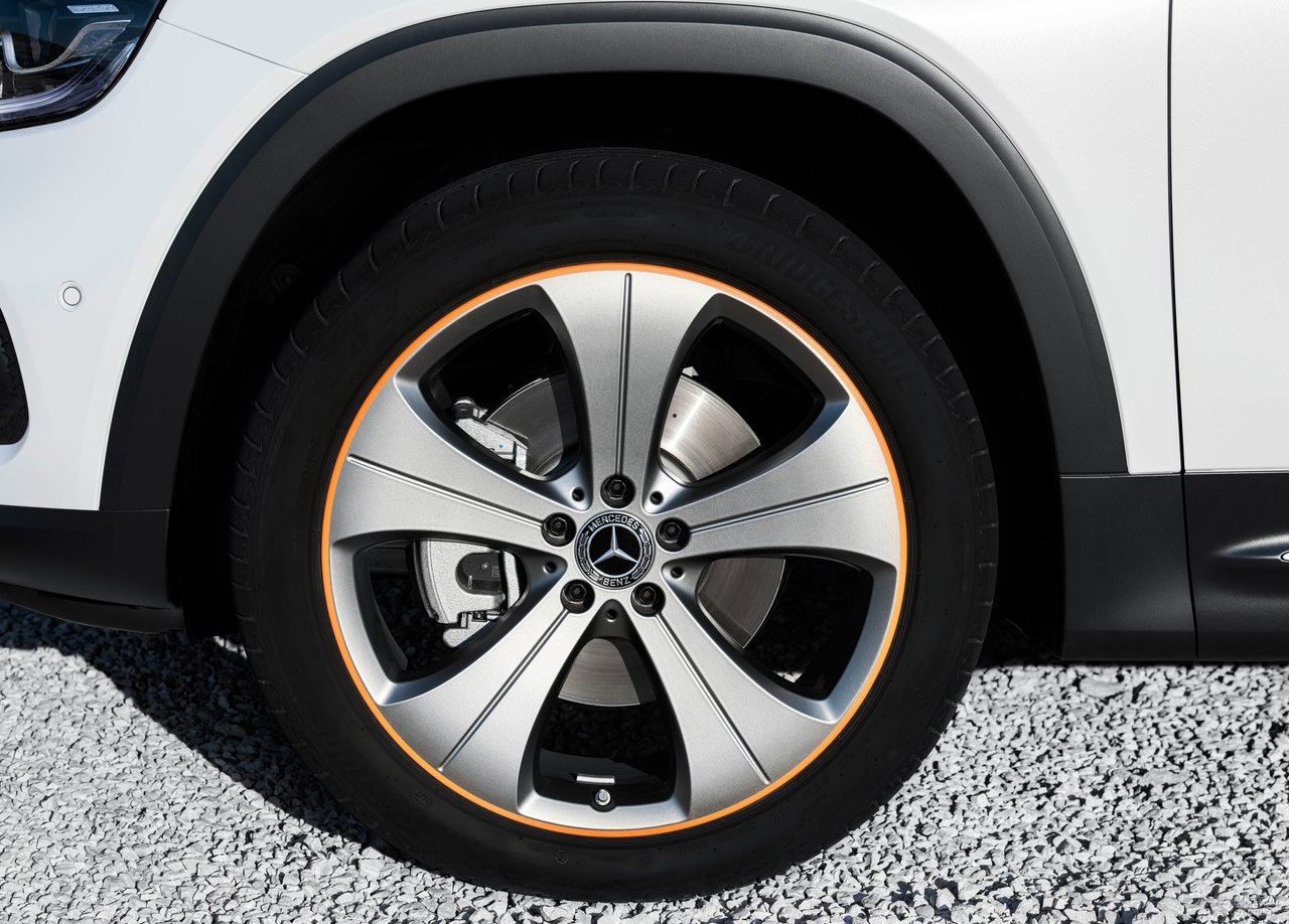 全新升级GLB预估出示17、18英尺二种规格轮圈,不一样版本号款式上还有所区别,一般版(乳白色车体)选用更传统式的五辐款式,运动版车系(深蓝色车体)则选用多辐款式轮圈。
