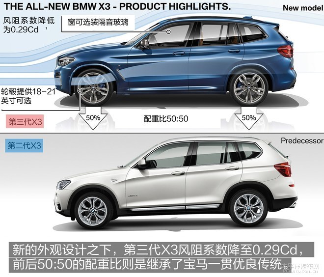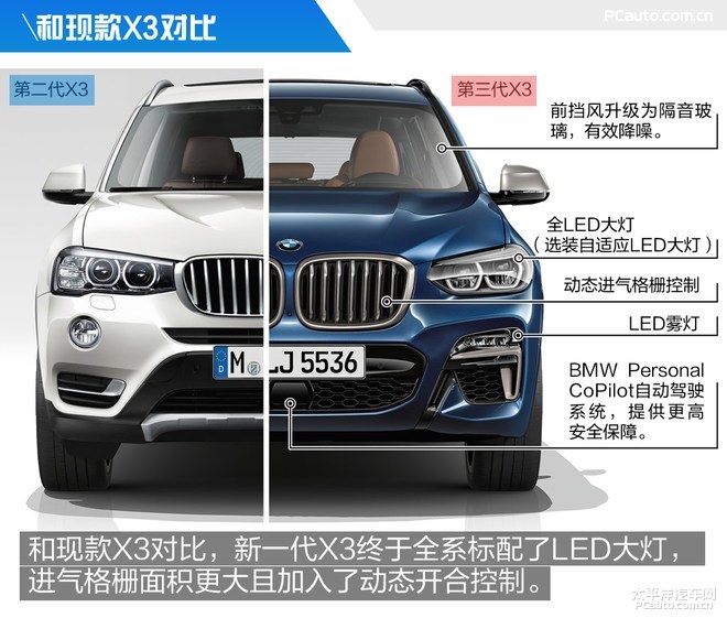 新/旧X3比照详尽的升級点都会正下方四幅图中,假如实在看不下去得话只必须记牢好多个点:更长、更轻、更快、更清静。
