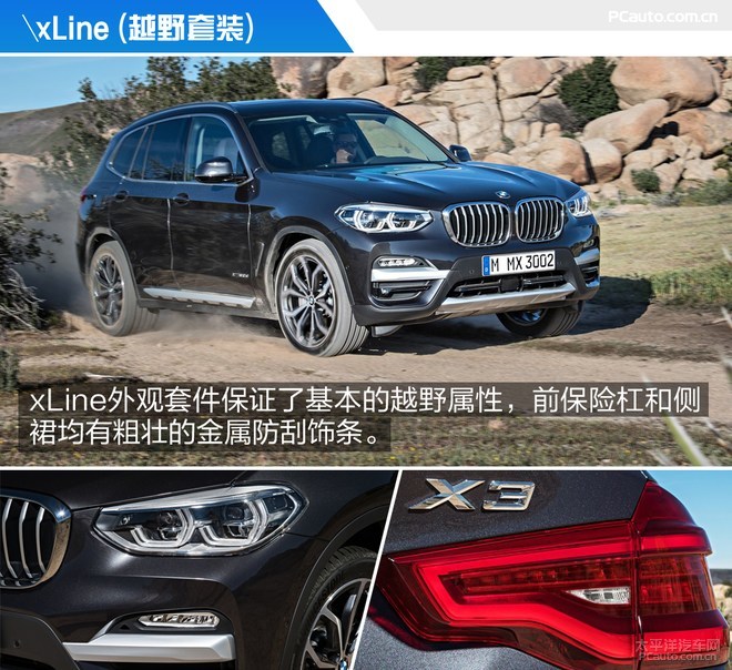 新一代X3在国外出示xLine(越野车套服)、M Sport(M运动套装)和Luxury Line(奢华套服)共3种设计风格,最后一个Luxury Line为新一代X3增加的设计风格。M Sport版本号一眼就能分辨出去,而xLine和Luxury Line的差别仅取决于,格珊/窗线到底是用修容不锈钢還是哑光漆面。