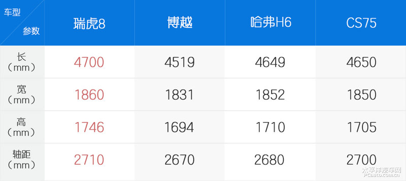 做为一款大紧凑型级SUV,在车体规格层面瑞虎8要比现阶段主流产品的紧凑SUV要大许多 ,尤其是车辆长,当然也拥有更宽阔的乘座室内空间及其汽车后备箱室内空间,这一点人们室内空间一部分再聊。