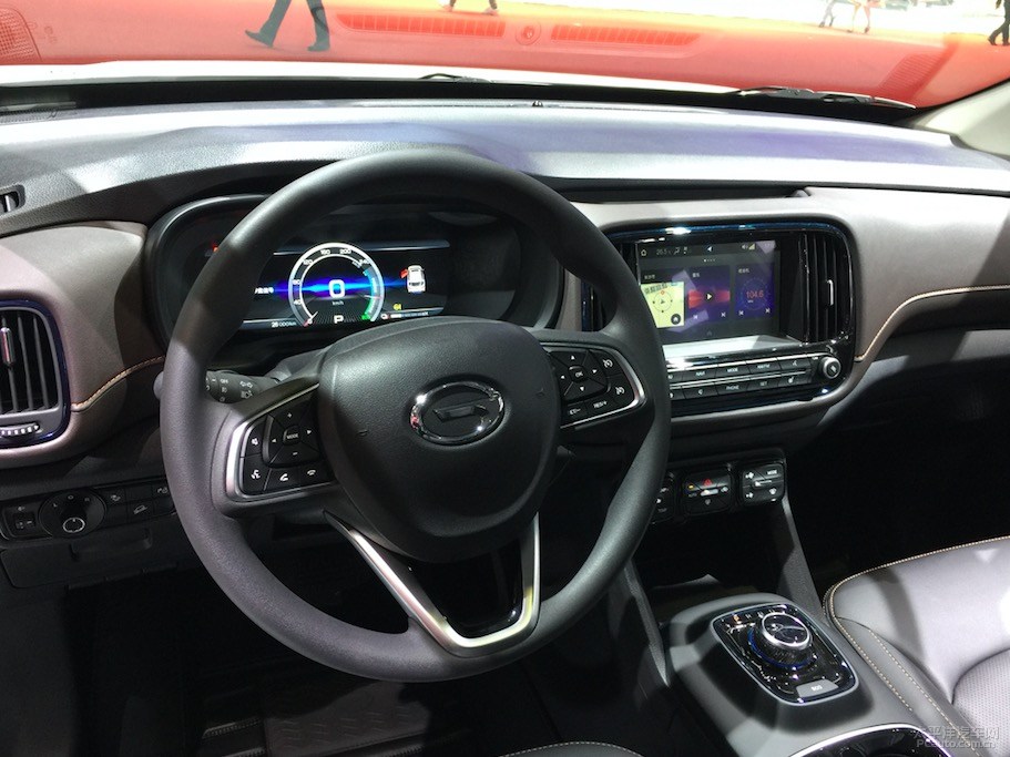 车内饰层面,新汽车仍然维持了广汽新能源GE3车系的总体合理布局,另外配置电子手刹、旋纽式换档组织、全液晶仪表盘、智能汽车方向盘、座椅加热、恒温空调、巡航定速等作用。