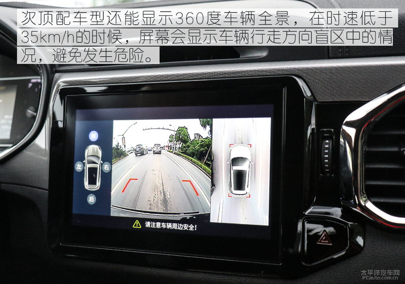 此外值得一提的是,试架的这个车系的中控屏还能显示信息全方位车子全景图,在车速小于35km/h的情况下,显示屏会显示信息车子走动方位盲点中的状况,防止产生风险。这一作用的配用不但针对新手司机而言十分舒心,对老师机也是很必须的,对盲点预测万一有一定的出错,将会会产生很严重的不良影响。尽管画面质量有点儿感人至深,可是功大于过,因此我还是挑选宽容它吧。