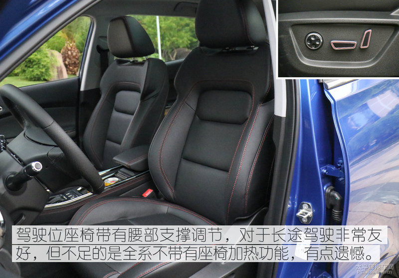 前座坐椅都含有腹部支撑点调整,是这一配备是要我很意外惊喜的一点,但不够的是全系列不含有座椅加热作用,有点儿缺憾。