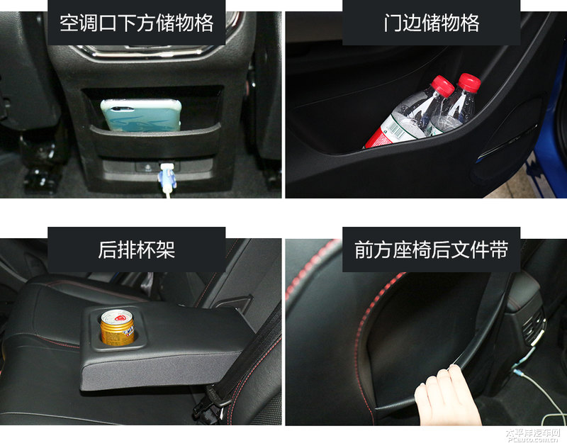 后排座置物工作能力主要表现还不错,门边框置物格较前边必要大一些,正中间护栏有两个杯托,通风口正下方有一个小置物格,放手机上十分适合,前座坐椅侧后方的公文袋室内空间也较为厚一些,并不是牢牢地迎合在坐椅上的设计方案。