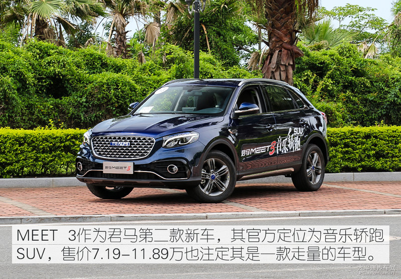 【尊流汽车网 测评频道栏目】谈起君马汽车,将会大伙儿还一些生疏,实际上它是众泰汽车主打产品主推年青顾客的全新升级单独知名品牌,创立仅大半年時间就发布了第一款车系S70,然后又在不上大半年的時间内,发布了第二款车系——MEET 3,那样的速率可真不简单,可是君马保证了,市场价7.19-11.89万算是平价,对于这台树立自身是“歌曲轿跑车”的SUV有什么整体实力?下面给你解释。