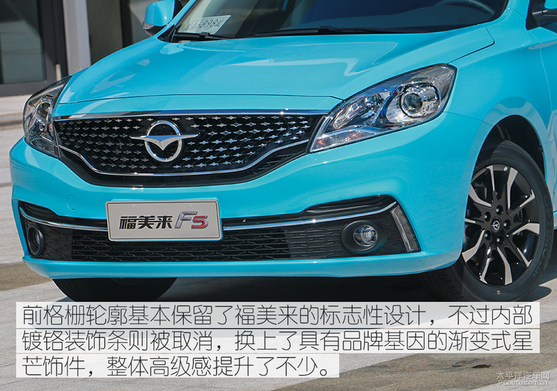 本来横穿两边大灯的银白色不锈钢装饰设计条也改成与车体同色系,与前脸格珊的更改相辅相成,可以说不锈钢装饰设计条在福美来F5的身上确实非常少见了,这也证实了一件事:室内设计师或中国人的审美观已经往积极主动的方位去更改,已不是一味的用看起来全能的银白色装饰设计件来填补整辆车的健身运动气质。