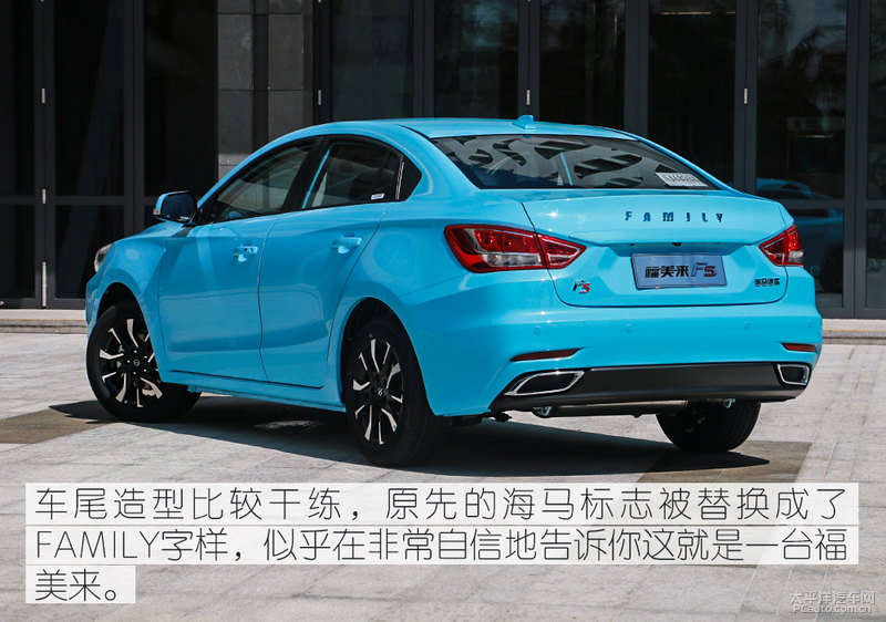 汽车倒车雷达与倒车后视都变成了全系列标准配置,省掉了后装的苦恼,顶配车系则提升了前侧停车雷达探测。尾端保险杆的排出气孔仅仅 装饰设计,真实的排汽管被掩藏在正下方。除开FAMILY字眼以外,尾端当然也切合提升了F5标志,为此与老款福美来区别起来。