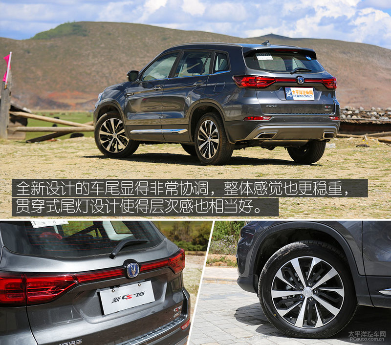 侧卧线框与老款CS75的区别算不上大,雄浑的线框依然看起来很有运动感。后尾选用了当下时兴的围绕式后尾灯设计方案,再次设计方案的后尾看起来十分融洽,总体觉得也更沉稳,质感也非常好。