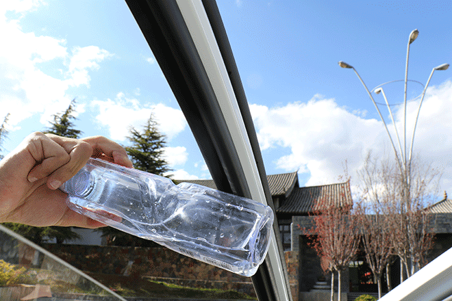 空的景田百岁山玻璃瓶这一位置是较为软的,很感兴趣得话,大伙儿能够喝了纯净水的情况下自身捏一下玻璃瓶,体会体会这一幅度。