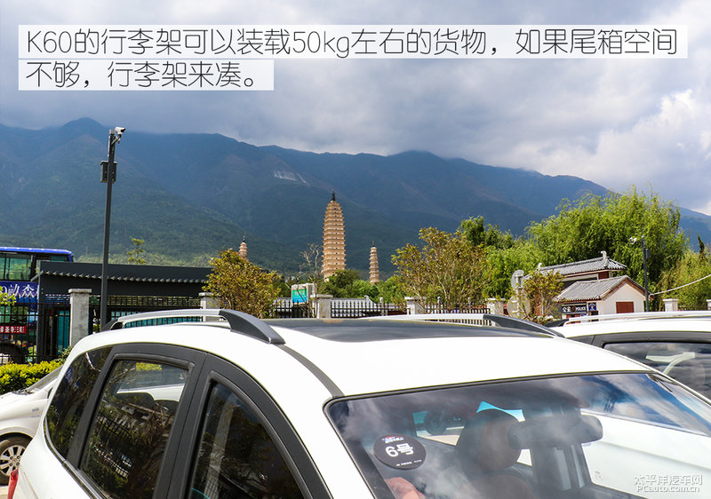 针对一些车而言,车子顶部的行李架是用于装饰设计的,不了多功能性功效,而K60的行李架是根据加强结构加固安裝的,能够装车50kg上下的货品,假如尾箱室内空间不足,行李架来凑。