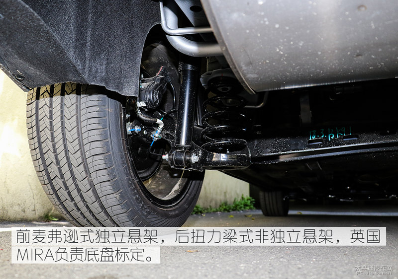 T500在悬挂系统上沒有优异的配备,也只不过前麦弗逊式独立悬挂与后扭力梁式非独立悬架,看起来好像有点儿磕碜寒碜。但是一切都是看调试,看一下雪铁龙标致。