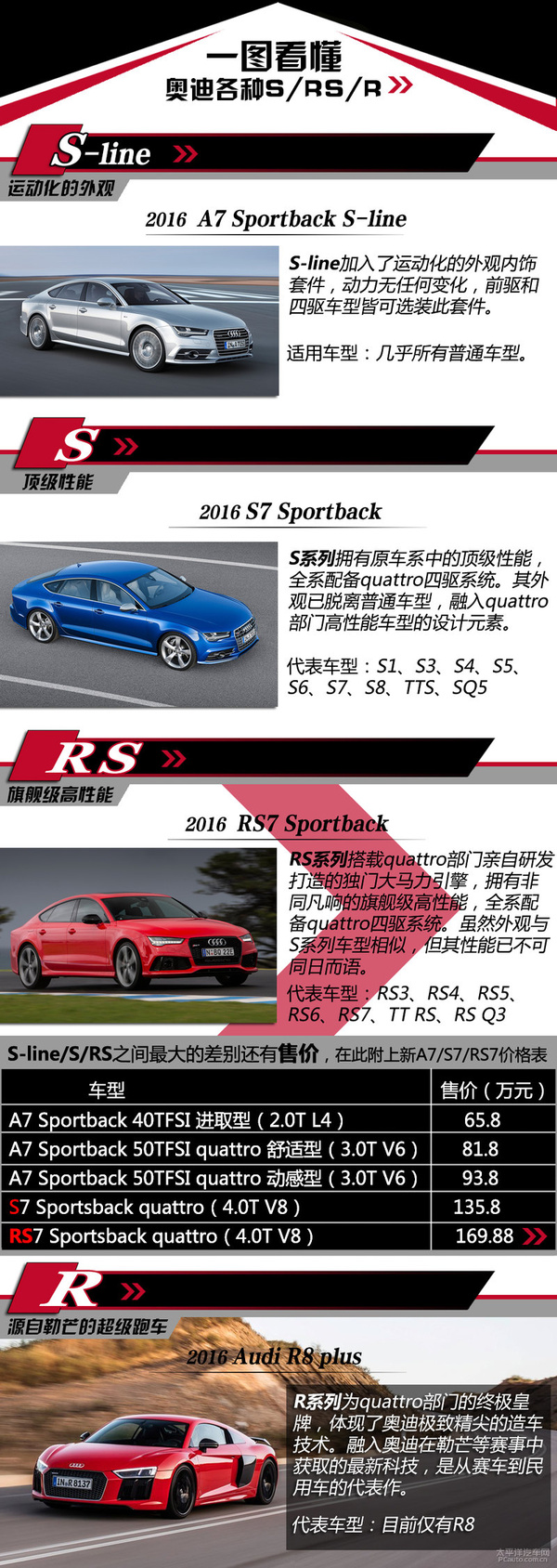 ● 一图详细介绍奥迪车各种各样S/RS/R:立懂RS7算老几