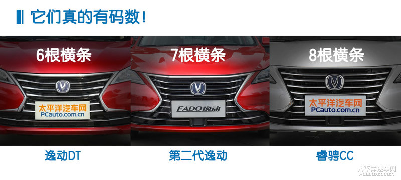 假如依照服装尺寸来划分,睿骋CC是XL码,第二代逸动是L码,而逸动DT就是M码,这一趣味的“尺码”还确实标识在前脸中的横横幅上,根据横横幅的总数增长能大概排序排序出:逸动DT、第二代逸动、睿骋CC的次序(最少如今的商品是可行的)。