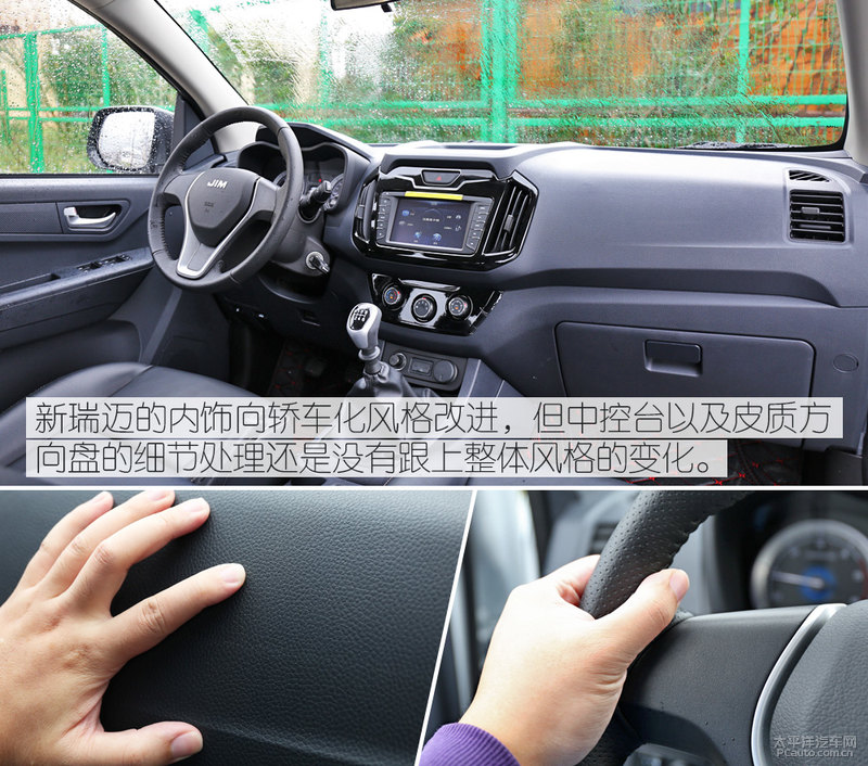 瑞迈的车内饰选用了小汽车化的室内设计风格,简洁中带了一些当代气场,早已已不是简易而年久的商用汽车车内饰了。那样的变化让瑞迈的车内饰看起来更精美,但用材和质量上還是沒有紧跟设计方案的步伐,比如汽车方向盘的触感,偏细的汽车方向盘不足迎合手面,而皮层用材也不足细致。但与大部分同级別独立皮卡车对比,早已是发展显著了。