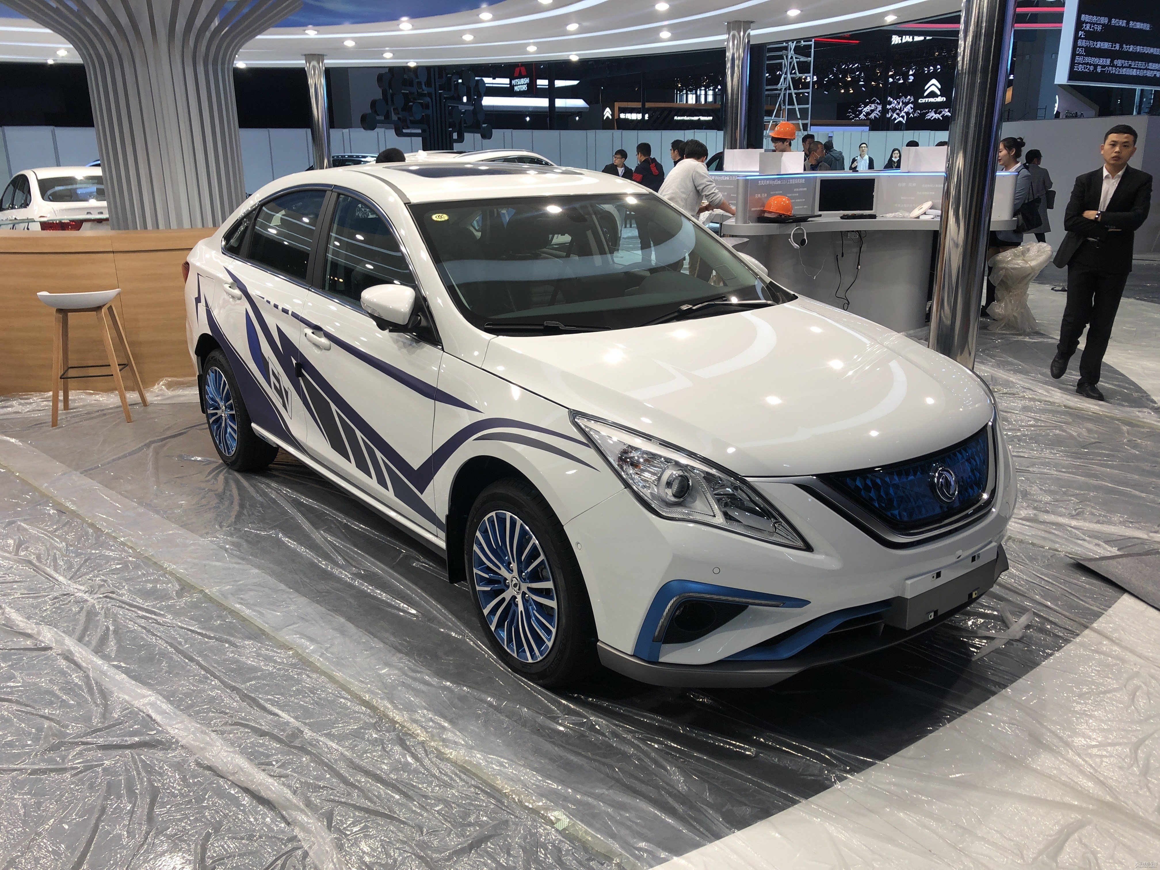 【尊流汽车网 2019上海车展】尊流汽车网上海车展正前方报导团体在展厅内拍来到东风风行主打产品景逸S50EV。