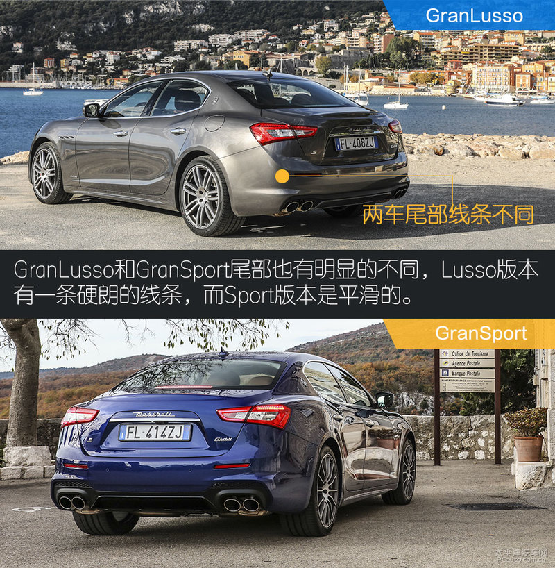 2款套服:GranLusso和GranSport最新款Ghibli将出示2款套服版本号,GranLusso和GranSport。这两个版本号也营造了Ghibli的二种不一样设计风格,“奢华”和“健身运动”。模块给与Ghibli从外型到车内饰也有不一样的味儿,这也是它这种C级车十分必须的多面性,为消費Ghibli的人生大赢家们,在“国际商务”和“个性化”出示了一个挑选。而在安全驾驶校准层面,2个版本号是一样的。(注:原文中深灰色为GranLusso,深蓝色为GranSport)。