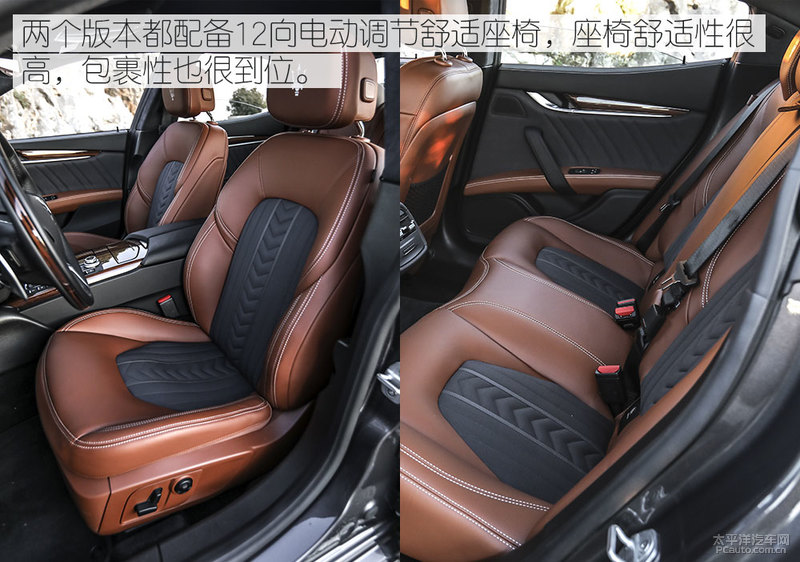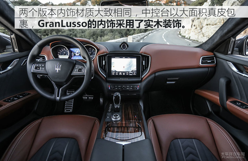 根据不一样的模块,GranLusso和GranSport的车内饰设计风格也是显著的不一样,GranLusso配置了Radica木饰面板和牛皮/尼龙布料(桑蚕丝材料)两色的坐椅,而GranSport则采用了全汽车真皮座椅。但是2款坐椅的乘座体会相距并不大,都十分的宽敞和舒服。